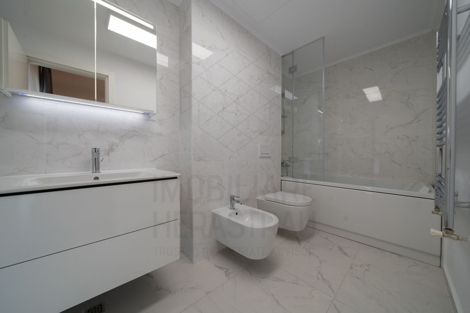 The night area includes two spacious bedrooms, enveloped in warm light and a peaceful ambiance, ideal for rest and relaxation. The atmosphere of comfort is completed by modern bathrooms, and the private terrace becomes a personal refuge – whether for reading moments, for morning coffee or time spent with the little ones.