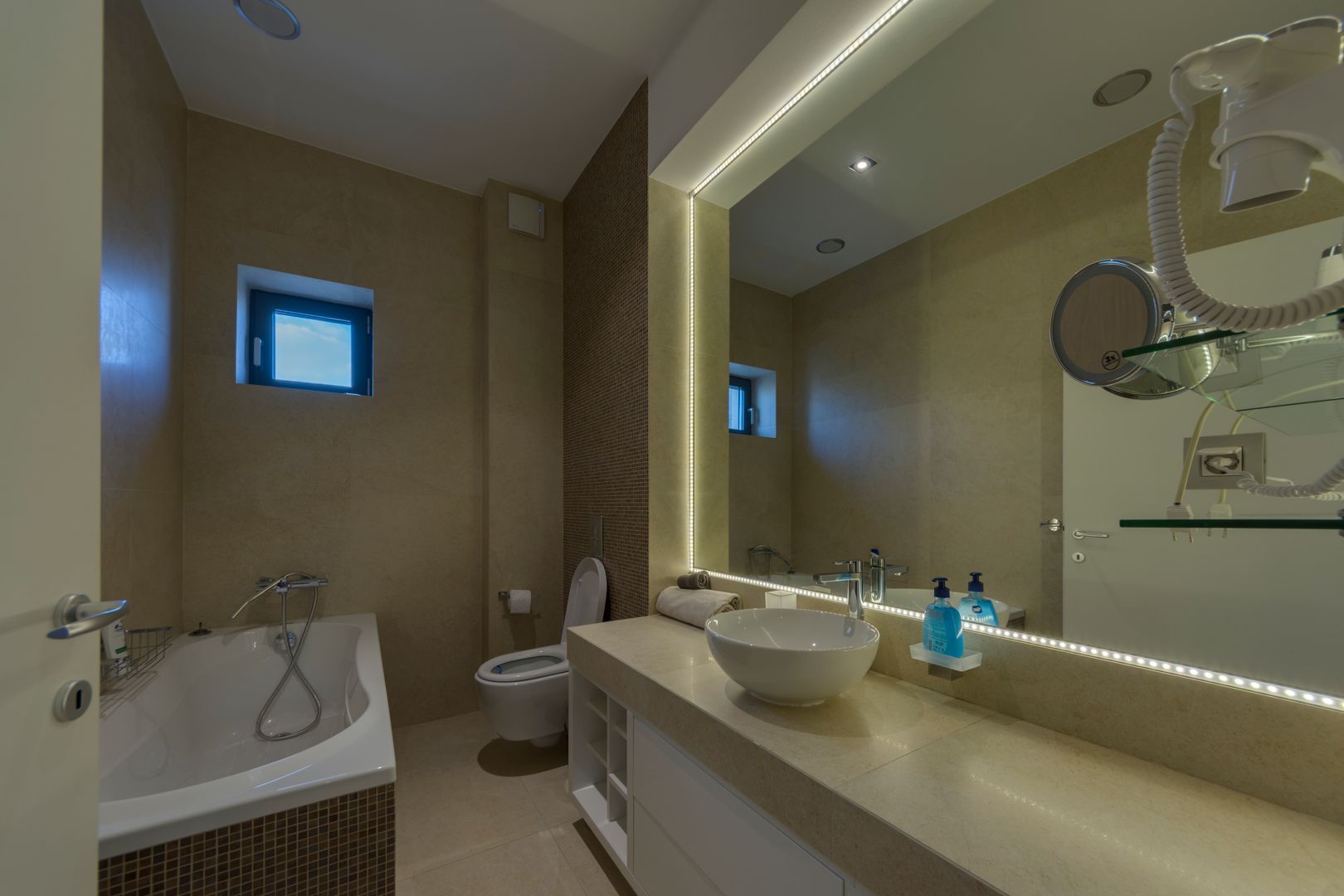 The 5-th level of the penthouse has two terraces, truly spectacular, with an area of 180 square meters, which is arranged with jacuzzi, relaxation area and dining area, living area . Also on this level it is arranged a barbeque area. On this level we have fitness room, a bathroom service and technical areas (laundry and storage). Furnishings are of the highest quality, underfloor heating, ceramic Porcelanosa, carpentry shockproof glazing Low E Clear – Saint Gobain 6mm, finishing terraces and balconies are wooden floors and granite, air conditioning (Mitsubishi) , central heating with individual meter type Immergas block, door access in apartment are side securized, Villeroy & Boch sanitary ware, Schindler elevator, bathrooms in natural stone. Also apartment has three reserved parking located underground.